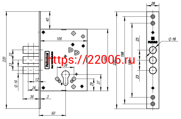 - Корпус Fuaro (Фуаро) врезного замка MDV25/C-60.00.3R16 в Сочи недорого