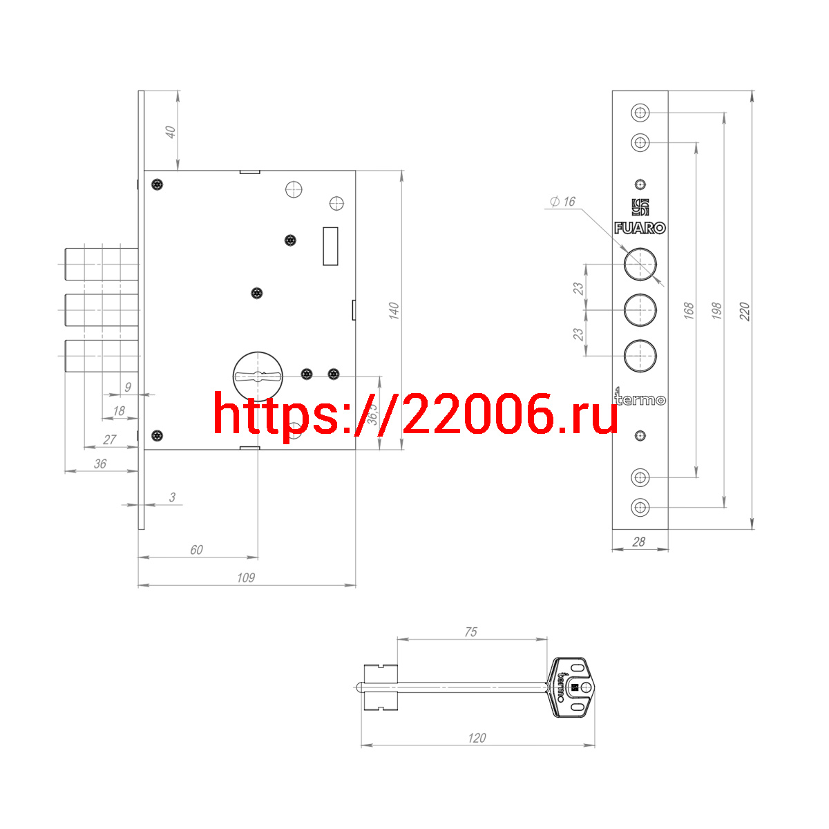 - Замок Fuaro (Фуаро) врезной сувальдный TERMO MDV25/S-60.00.3R16 4 key (ключ удл. 120/75 мм) в Сочи недорого