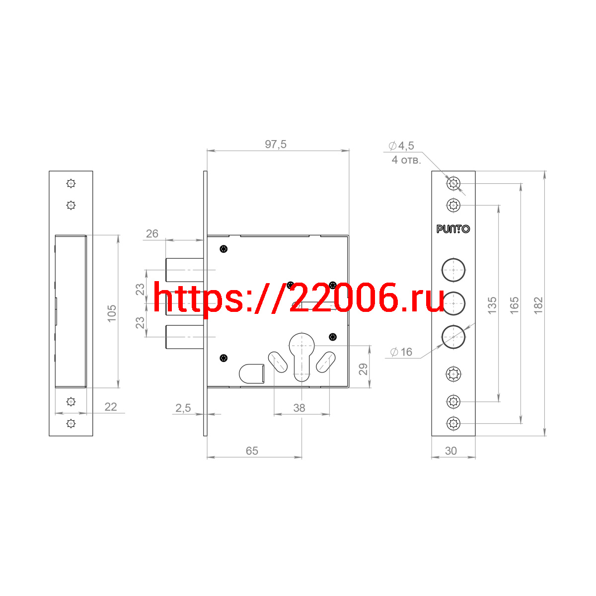 - Корпус Punto (Пунто) врезного замка цилиндровый MDV30/C-65.00 CP хром тех.уп. в Сочи недорого