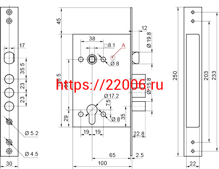 - Корпус Border (Бордер) врезного замка с защёлкой ЗВ4-3Г /79048/ в Сочи недорого