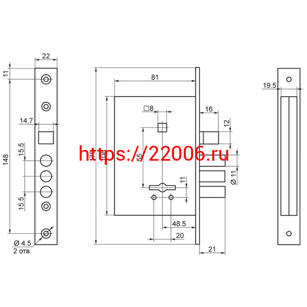 - Замок Sam (Сам) врезной сувальдный с защёлкой в комплекте с ручкой ЗВ9-6/13 (медный антик), 3 кл. /77311/ в Сочи недорого