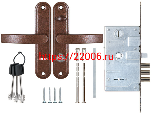 - Замок Sam (Сам) врезной сувальдный с защёлкой в компл с ручкой ЗВ9-8.3/13(КЛП5-85) лев (медн ант), 3 кл/88011/ в Сочи недорого