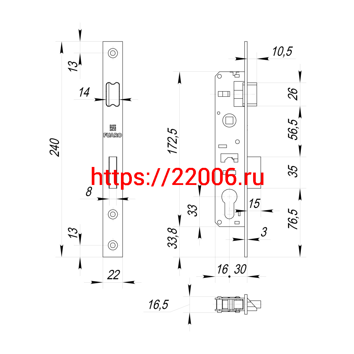 - Корпус Fuaro (Фуаро) узкопрофильного замка с защелкой PROF153-30/85 (153-30/85) CP хром в Сочи недорого