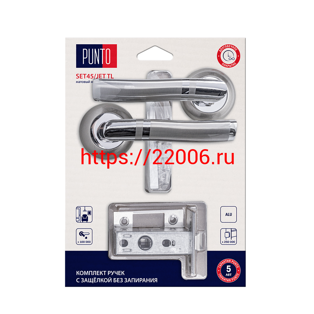 - Комплект ручек Punto (Пунто) с защелкой без запирания LM/A SET45R.TL54.JET/HD SN/CP-3 матовый никель/хром в Сочи недорого