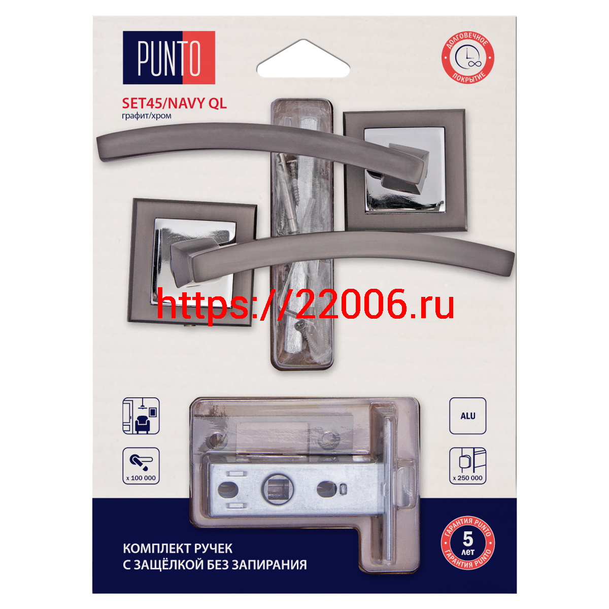 - Комплект ручек Punto (Пунто) с защелкой без запирания LM/A SET45K.QL52.NAVY/HD GR/CP-23 графит/хром в Сочи недорого