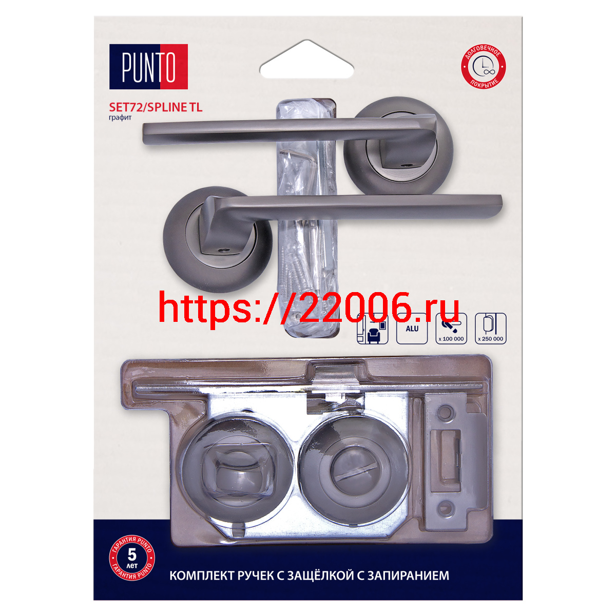 - Комплект ручек Punto (Пунто) с защелкой c запиранием LM/A SET72R.TL54.SPLINE/HD GR-23 графит в Сочи недорого
