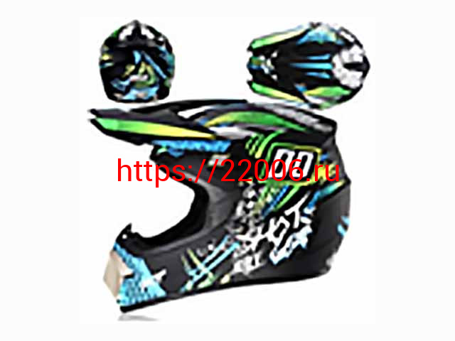 - Мотошлем VIRTUE MD-905 Кросс черный матовый с голубо-салатовым граффити (L) в Сочи недорого