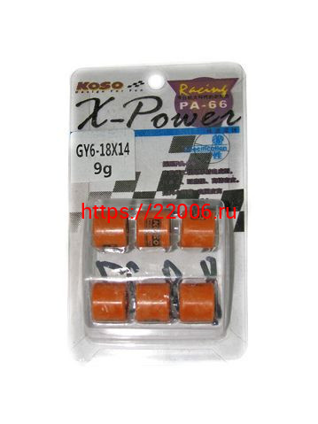 - Ролики вариатора (комплект 6 штук) 18*14 9 грамм 152QMI, 157QMJ KOSO в Сочи недорого