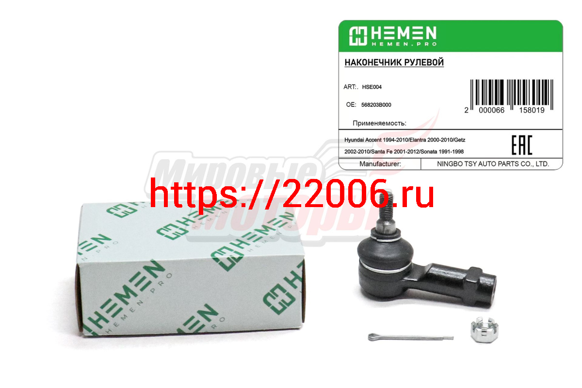 - Наконечник рулевой Hyundai Accent 94-, Santa Fe 01-, Getz 02-, Kia Spectra 04- (HSE004) в Сочи недорого