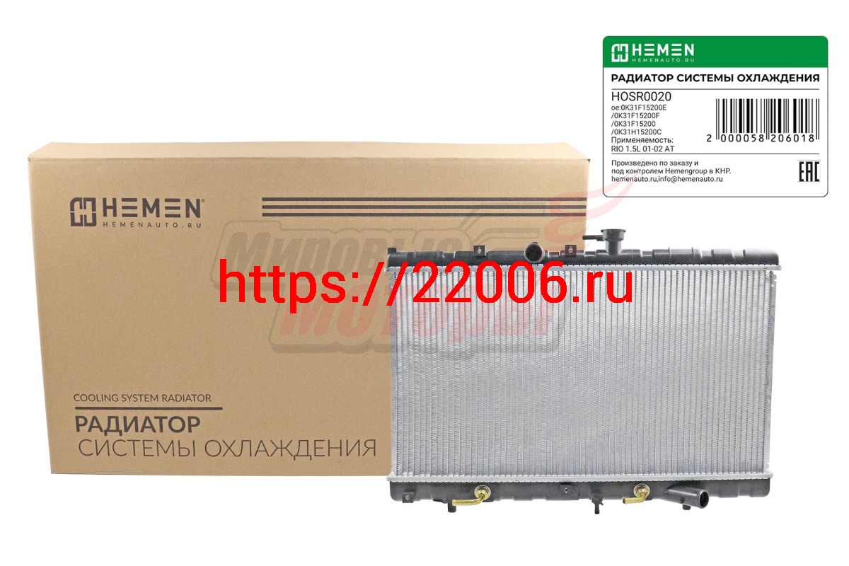 - Радиатор охлаждения двигателя KIA RIO 1.3/1.5 00-05 AT(HOSR020) в Сочи недорого
