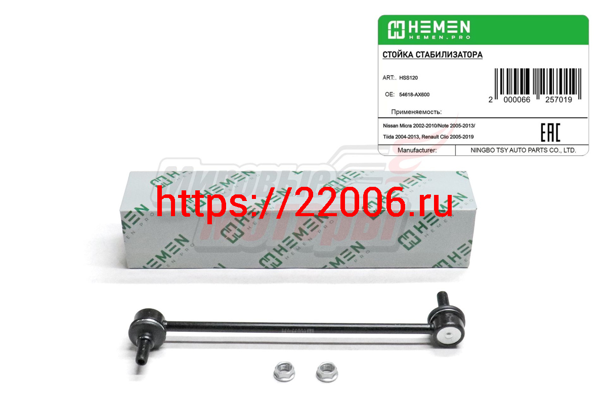 - Стойка стабилизатора передняя Nissan Micra 02-, Note 05-, Tiida 04-, Renault Clio 05- (HSS120) в Сочи недорого