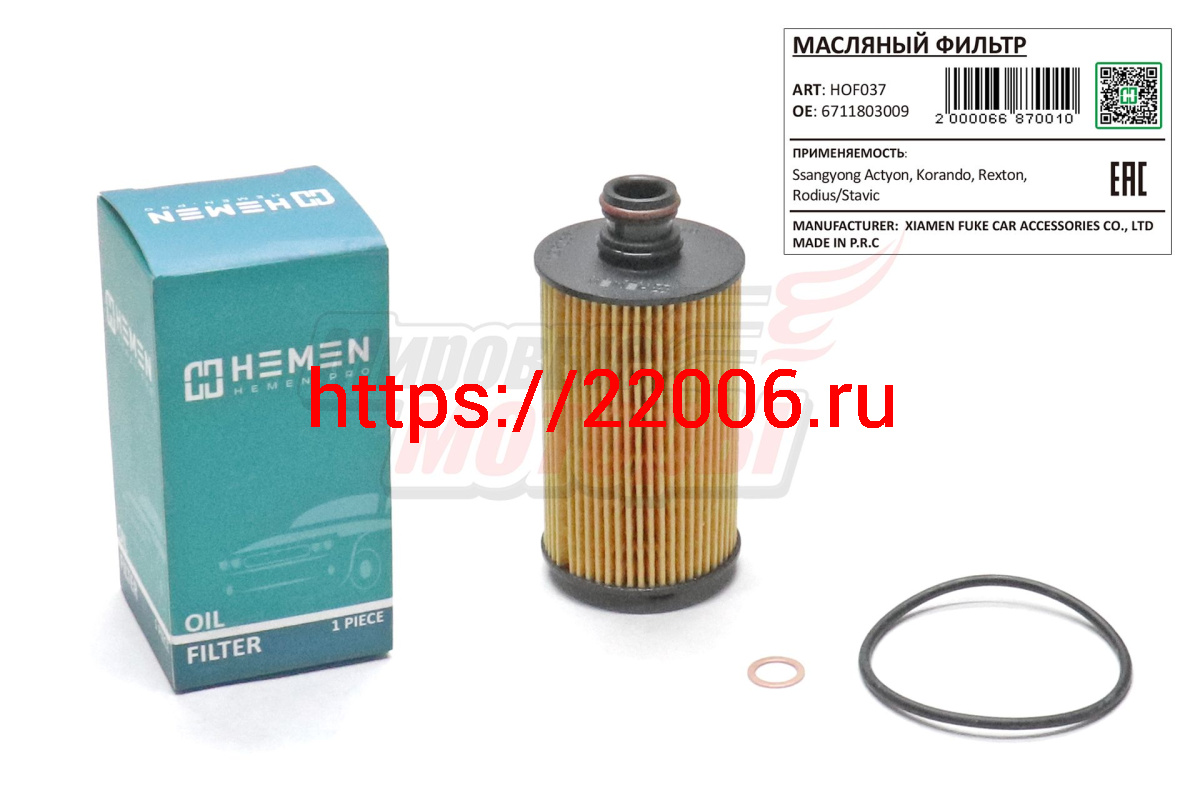 - Фильтр масляный Ssangyong Actyon,Korando,Rexton,Rodius/Stavic (HOF037) в Сочи недорого