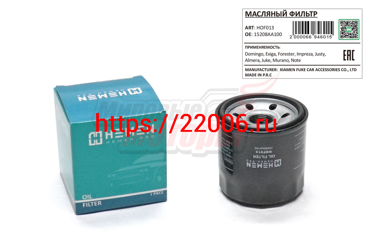 - Фильтр масляный Domingo, Exiga, Forester, Impreza, Justy, Almera, Juke, Murano, Note (HOF013) в Сочи недорого