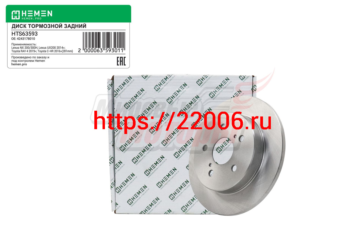 - Диск тормозной задний LEXUS NX200, UX200, TOYOTA С-HR 16-, RAV4 V XA50 18-, диам. 281 (HTS63593) в Сочи недорого