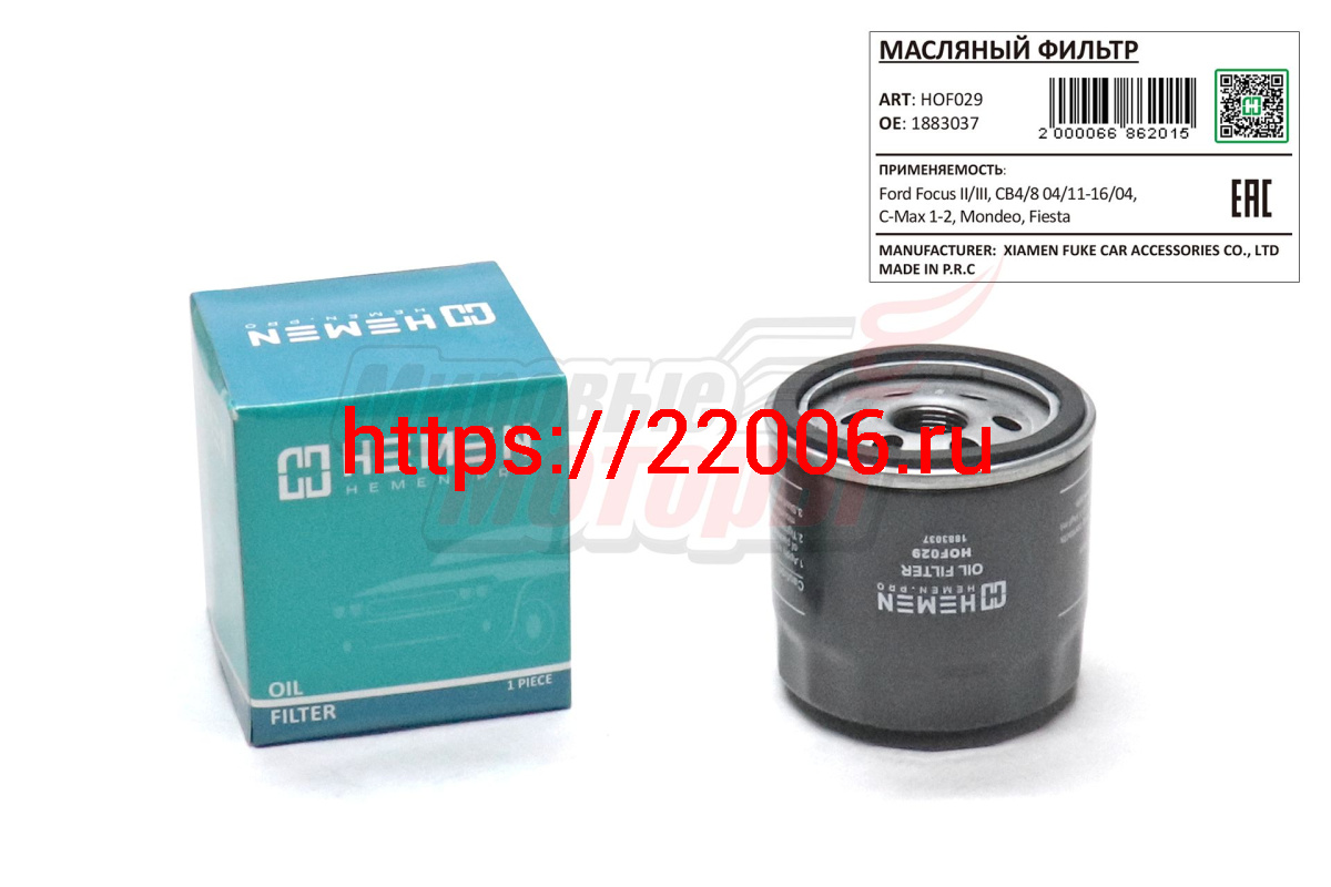 - Фильтр масляный Ford Focus II/III, CB4/8 04/11-16/04, C-Max 1-2, Mondeo, Fiesta (HOF029) в Сочи недорого