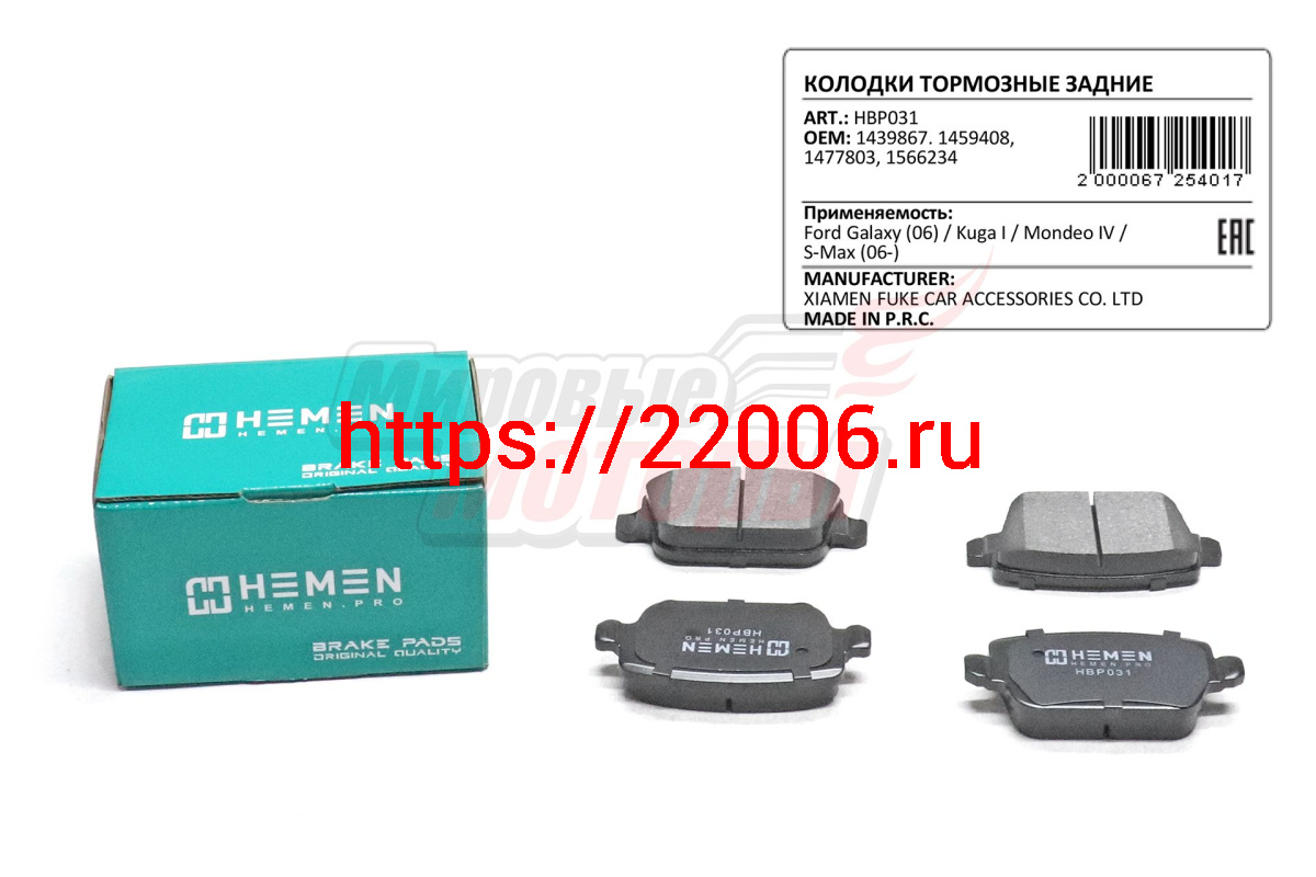 - Колодки торм. зад. диск. Ford Galaxy 06-, Kuga I, Mondeo IV, S-Max 06- (HBP031) в Сочи недорого