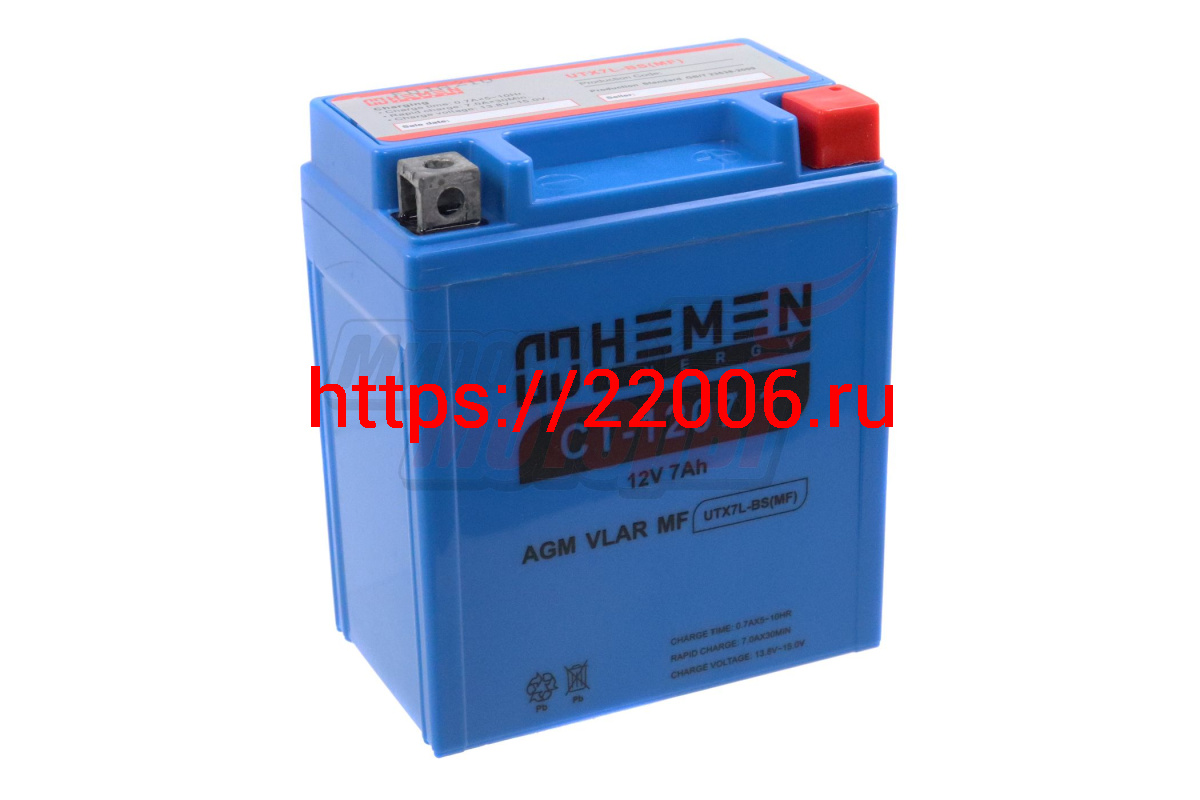 - Аккумулятор 12В 7Ач HEMEN ENERGY CT1207.1 (UTX7L-BS(MF))(кислотный, герметичный) (обр.полярн) (113*70*132мм) в Сочи недорого