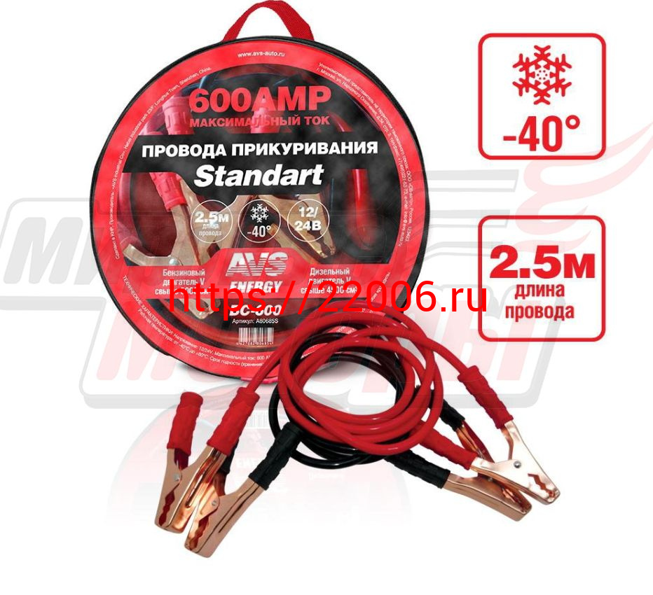 - Провода прикуривателя "AVS" Standart морозостойкие 600А/2,5м (ВС-600)(в сумке) в Сочи недорого