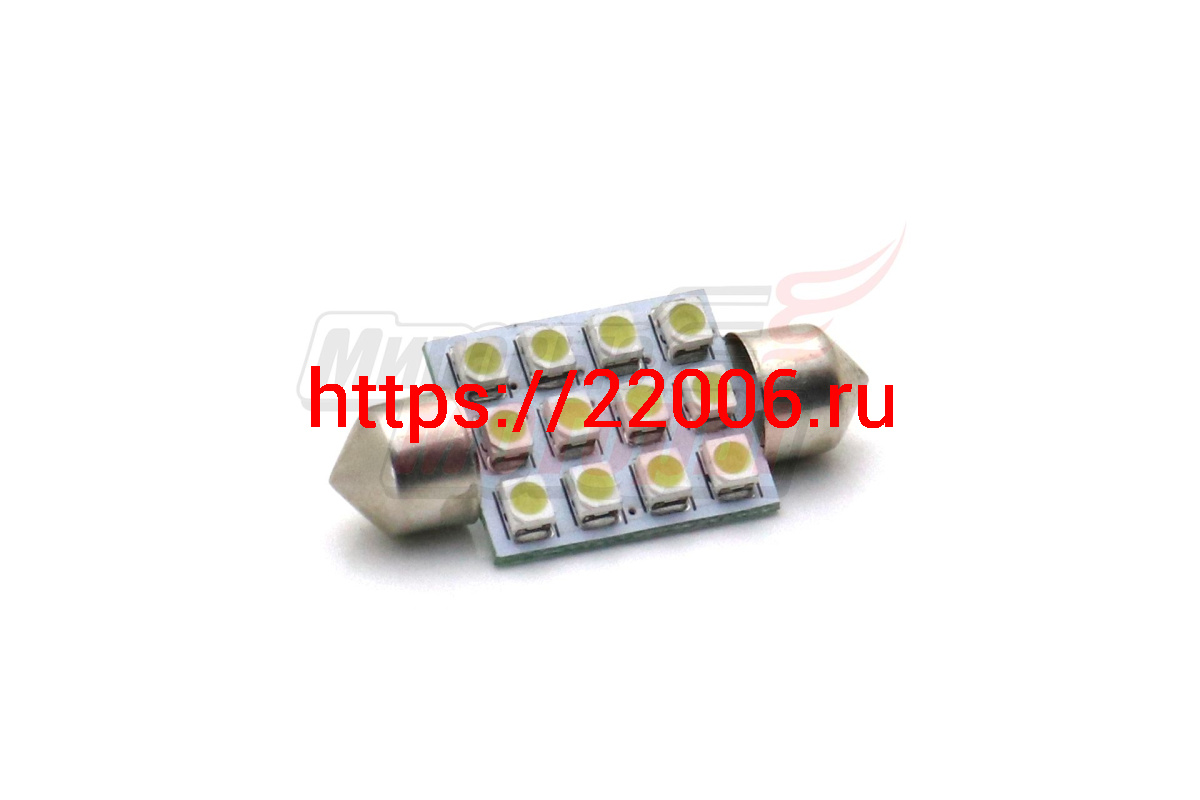 - Лампа 12 В T11х36, 12 светодиодов 3528SMD, двухцокольная, подсветки, белая в Сочи недорого
