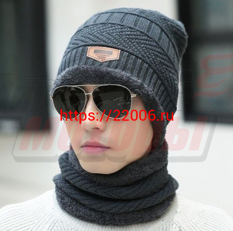 - Шапка+шарф-снуд с мехом серый в Сочи недорого