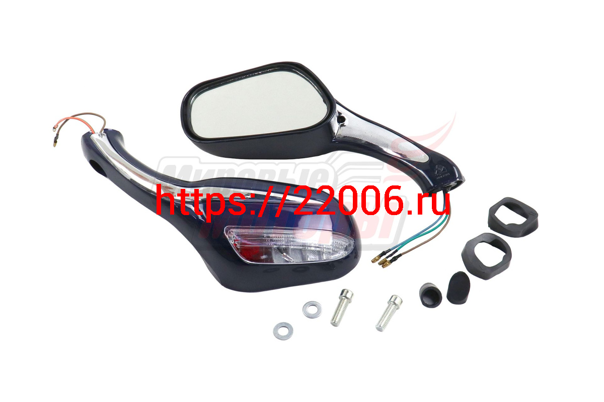 - Зеркала (070) пласт.Каплевидные объемные синие, поворотник (круглый разъем под скутер) в Сочи недорого