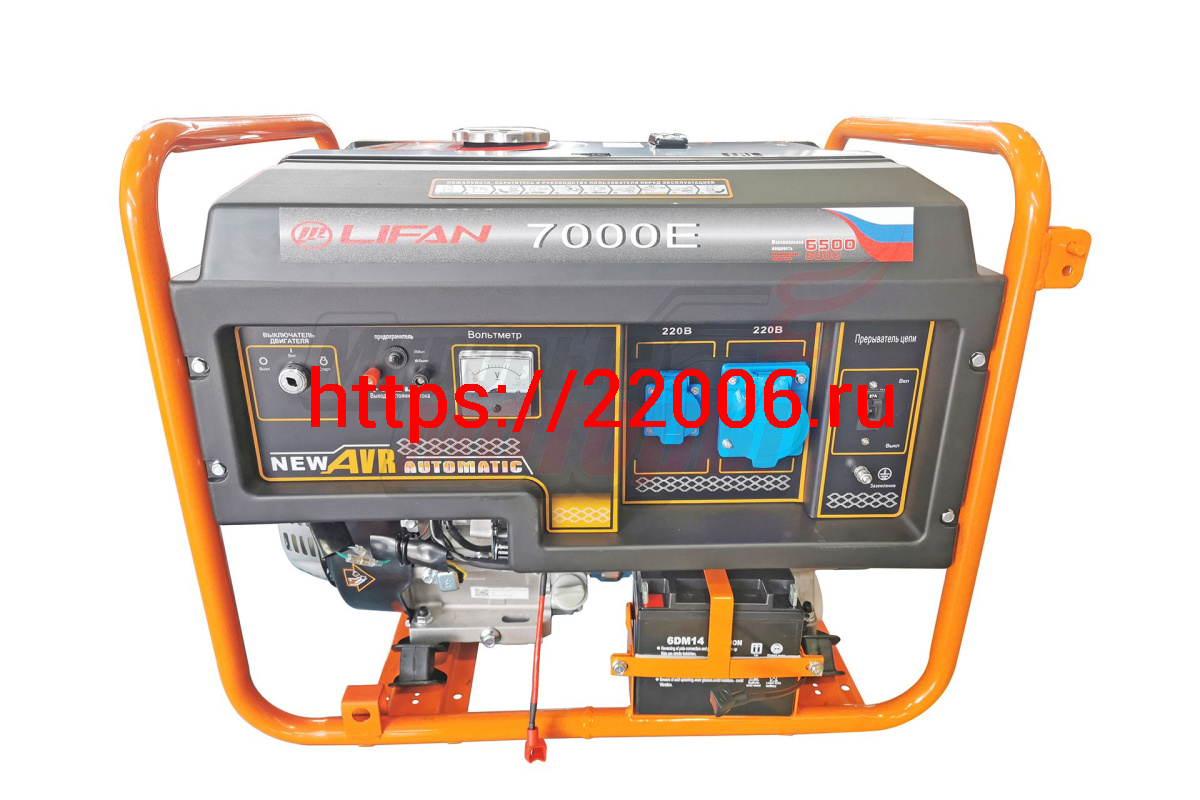 - Генератор бенз. "LIFAN" 6GF-4(LF7000Е)(ном.6кВт,макc.6,5кВт, 4т.,15л.с.,бак 25л.,электростартер, медн.обм.альтернатора, AVR, жк табло, колеса, АКБ) в Сочи недорого