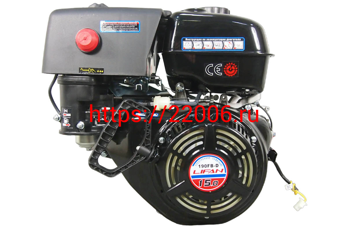 - Двигатель LIFAN 15 л.с. 190F-D (вал d25 мм) ЭЛ.СТАРТЕР, с катушкой освещения 12В 7А 84Вт Лидер в Сочи недорого