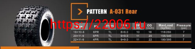 - Покрышка ATV 9" 22 х 11,00 - 9 (А-031) без камеры, задние SUN.F в Сочи недорого