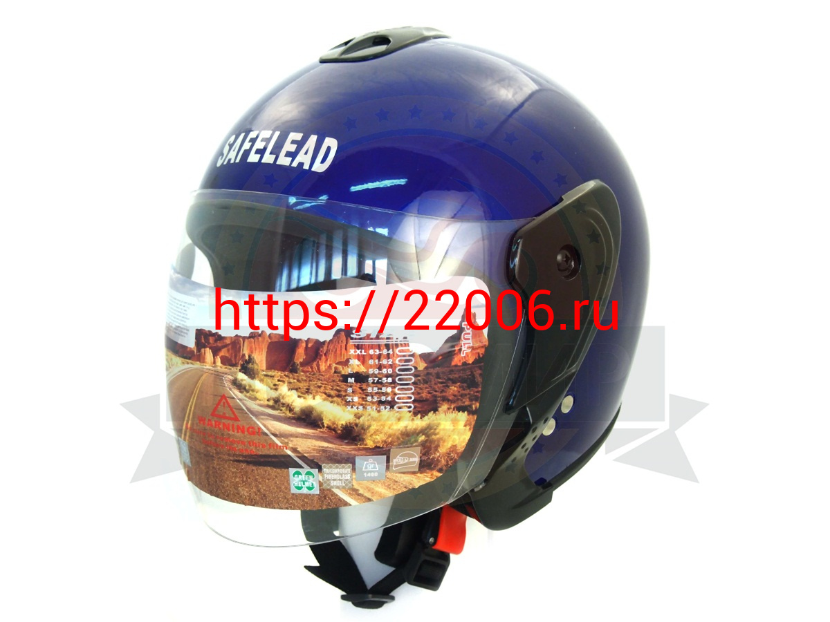 - Шлем открытый "Safelead" HF-217"колобки с доп. стеклом" deep синий, красный черный, размер S в Сочи недорого