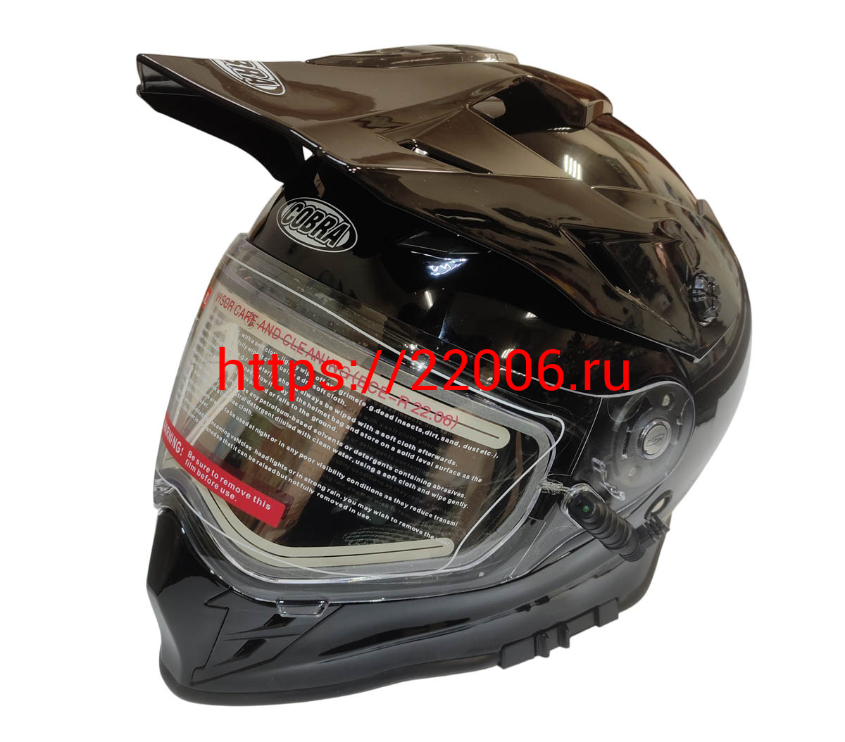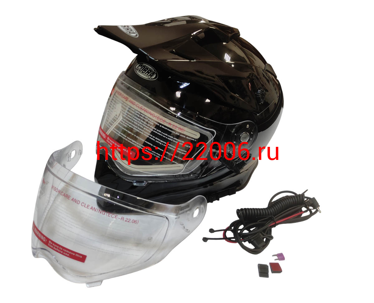 - Шлем кроссовый со стеклом (туринг) СНЕГОХОДНЫЙ COBRA EC H331, черный, с ПОДОГРЕВОМ ВИЗОРА, размерXXL в Сочи недорого