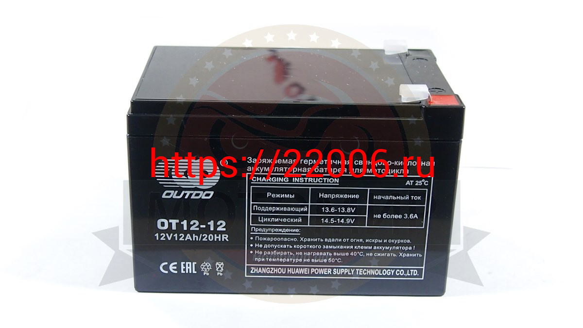 - Аккумулятор 12В 12 А/ч, кислотный AGM OТ12-12, OUTDO (151х98х96х100по_клеммам) гориз.клеммы справа в Сочи недорого