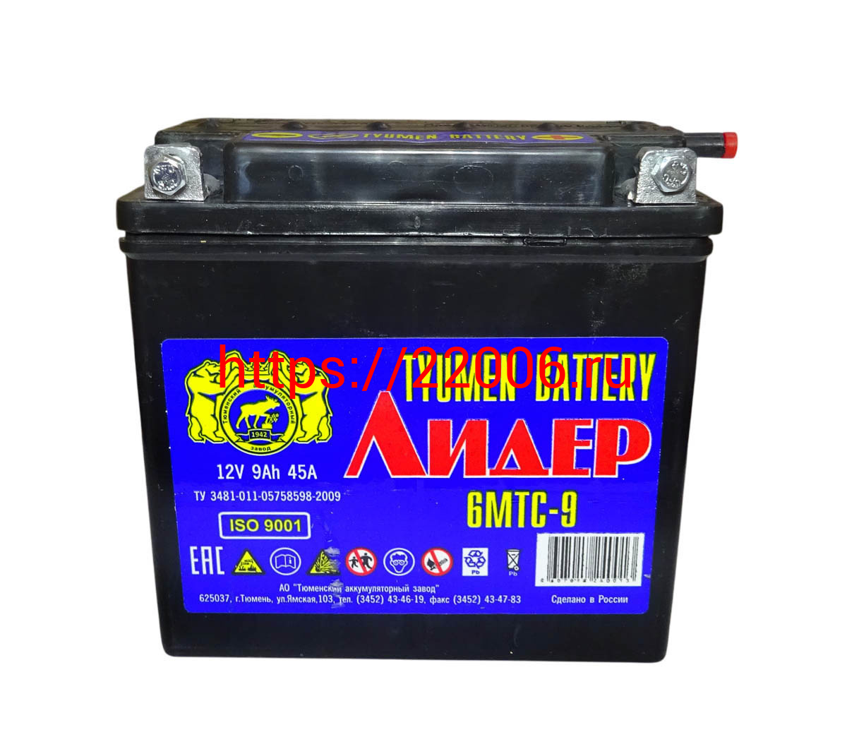 - Аккумулятор 12В 9 А/ч, г.Тюмень Лидер (6МТС-9) под болт(140х75х135) обрат. пол., Кислот. Сухозарядж в Сочи недорого