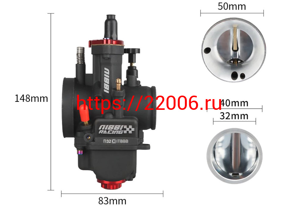 - Карбюратор NIBBI Racing PWK32 (YJ), реком.двиг. 250-300 см3 (вход/выход 32 и 55 мм) в Сочи недорого