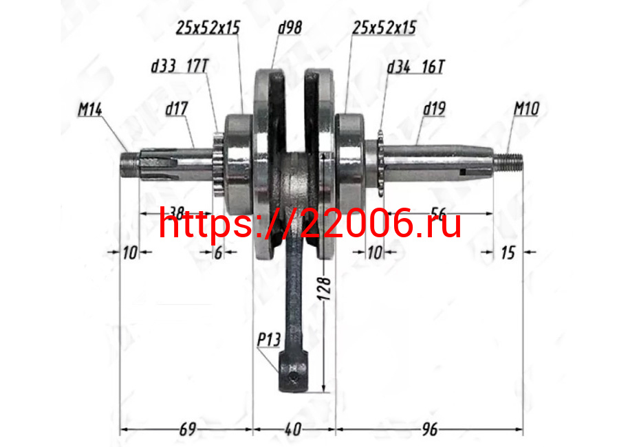 - Коленвал TTR125, ALPHA, 152 FMI,153FMI (h55.5, L=102mm, палец13mm) (НАБОР) в Сочи недорого