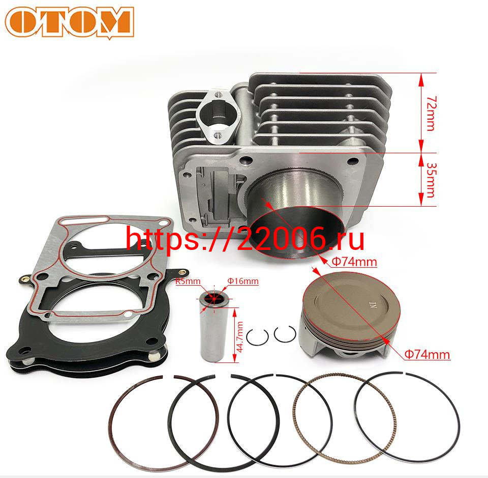 - Цилиндр в сборе с поршнем ZS172FMM-3A, 74мм, тюнинг ZS174FMM (CB250-F) (big bore) OTM в Сочи недорого
