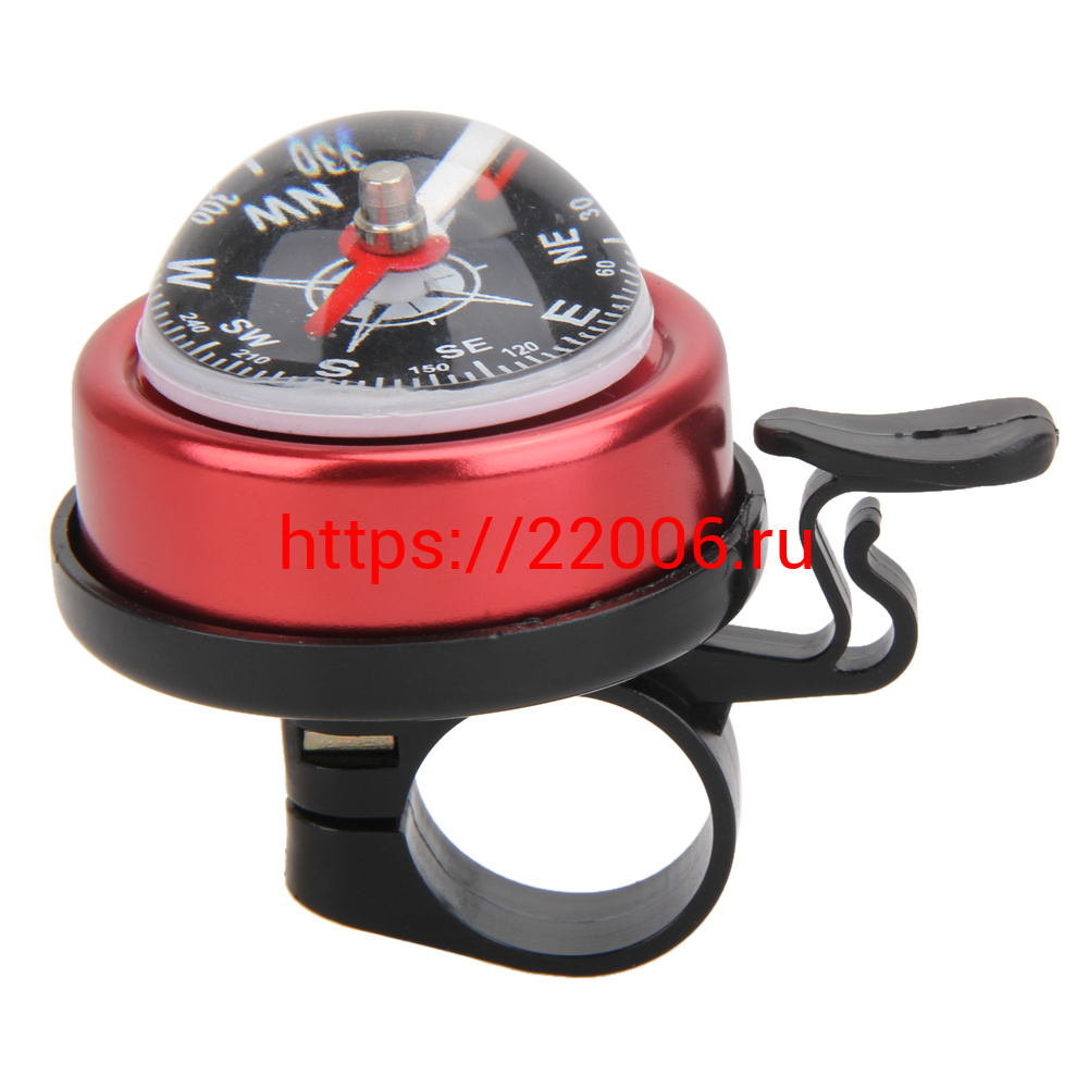 - Звонок велосипедный малый с компасом, сталь/пластик, синий/красный в Сочи недорого
