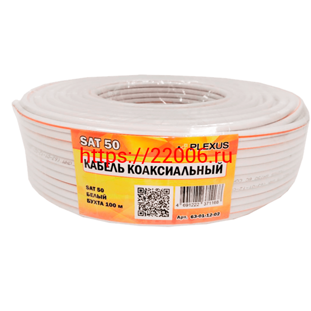 - PLEXUS RG-6 SAT 50 Медь 64% белый: Кабель коаксиальный 75 Ом, 100 м (100/600) в Сочи недорого