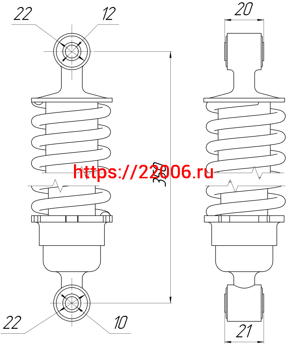 - Амортизатор Alpha зад. хром (L-350,D1-22,d1-12, Н1-20, D2-22,d2-10, Н2-21) ДОРОГОЙ (длинный стакан) в Сочи недорого